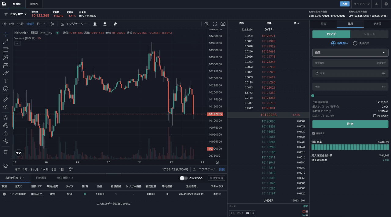 ビットバンクの信用取引では、現物市場と同じ価格・流動性を利用できるため、合理的な価格で、透明性の高いお取引が可能です。信用取引はデリバティブ商品などの複雑な金融商品と異なり、現物市場において金銭や暗号資産を借り入れて現物取引を行うという、現物取引の延長線上のサービスであるため、現物取引のご経験がある方であれば仕組みが理解しやすい点もメリットのひとつです。