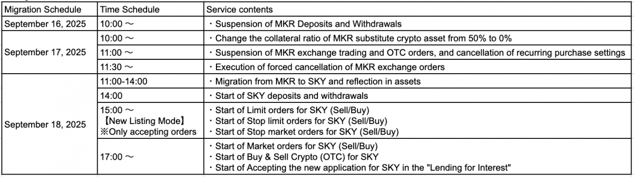 Regarding the "Delisting of MKR and migration to SKY", we previously announced a postponement. However, in accordance with the migration schedule outlined below, we will proceed with the delisting of MKR, support the migration from MKR to SKY, and begin listing SKY.