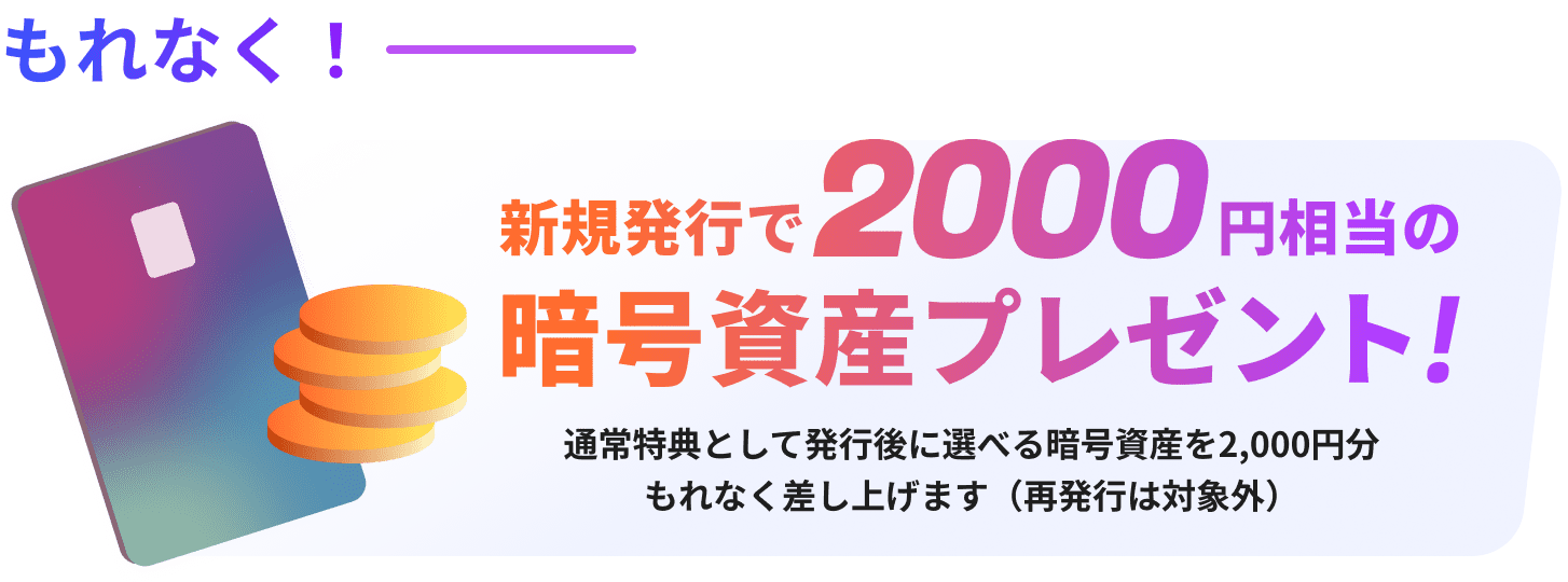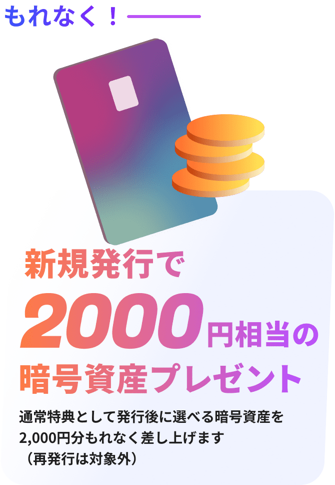 ・カード発行日〜2026年6月30日までの間に定期購入により1,000円以上の暗号資産を購入すること。