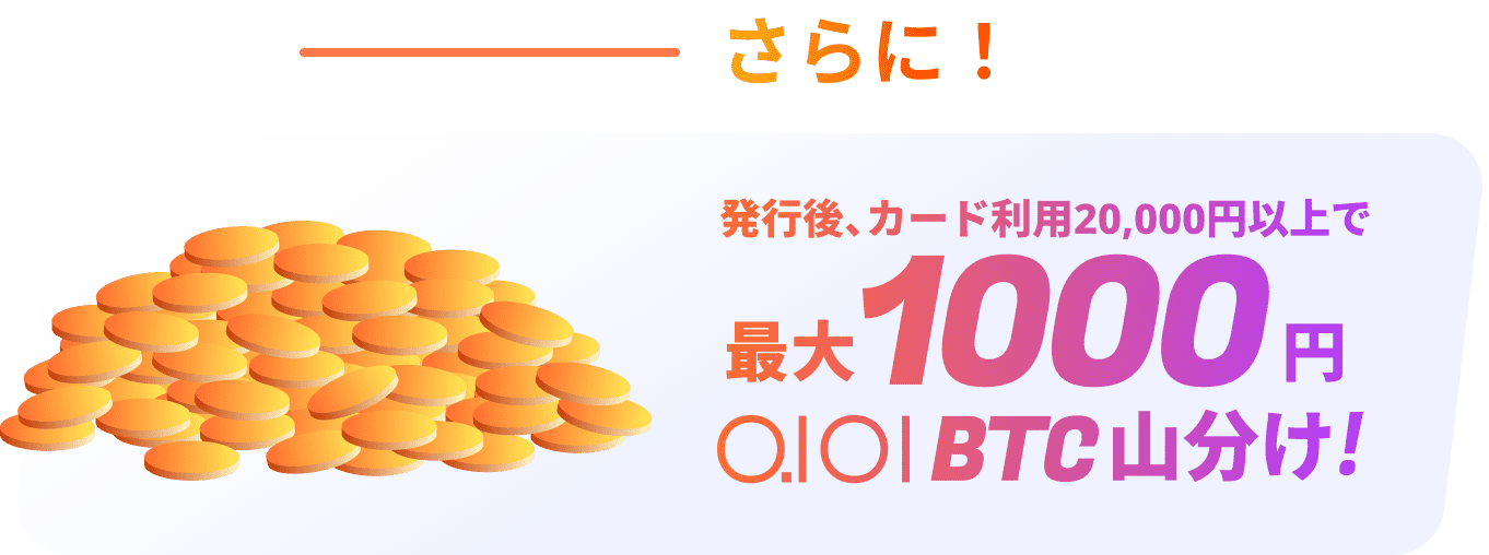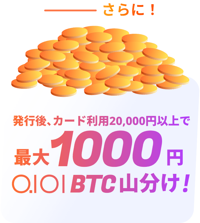 ・特典③の集計期間はカード発行日から2026年6月30日までです。定期購入機能で購入された暗号資産が対象です。なお、残高不足その他の理由で購入失敗した取引は対象外となります。