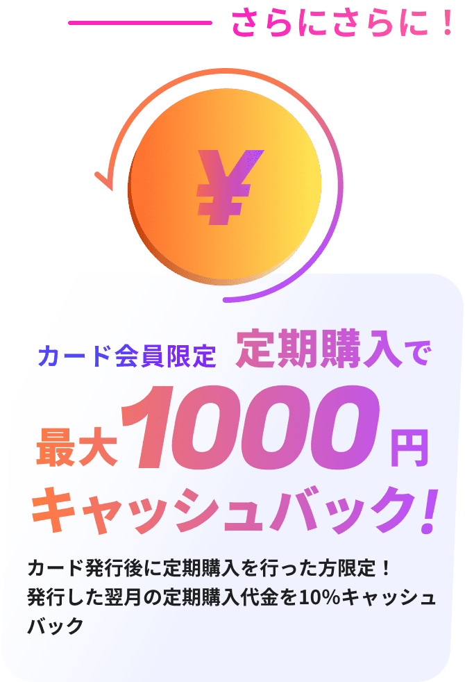 特典③:カード会員限定で定期購入利用額の10%相当をキャッシュバック