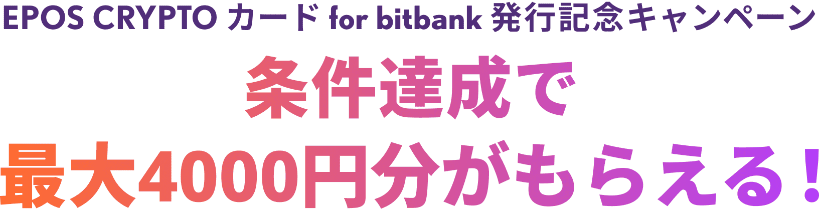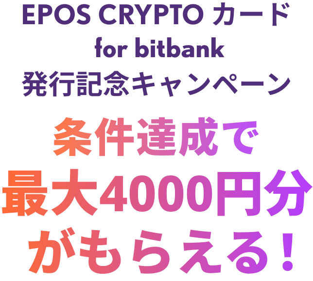 ・特典の付与時にビットバンクの口座をご解約、またはEPOS CRYPTOカード for bitbankを退会されているお客様におかれましては無効とさせていただきます。