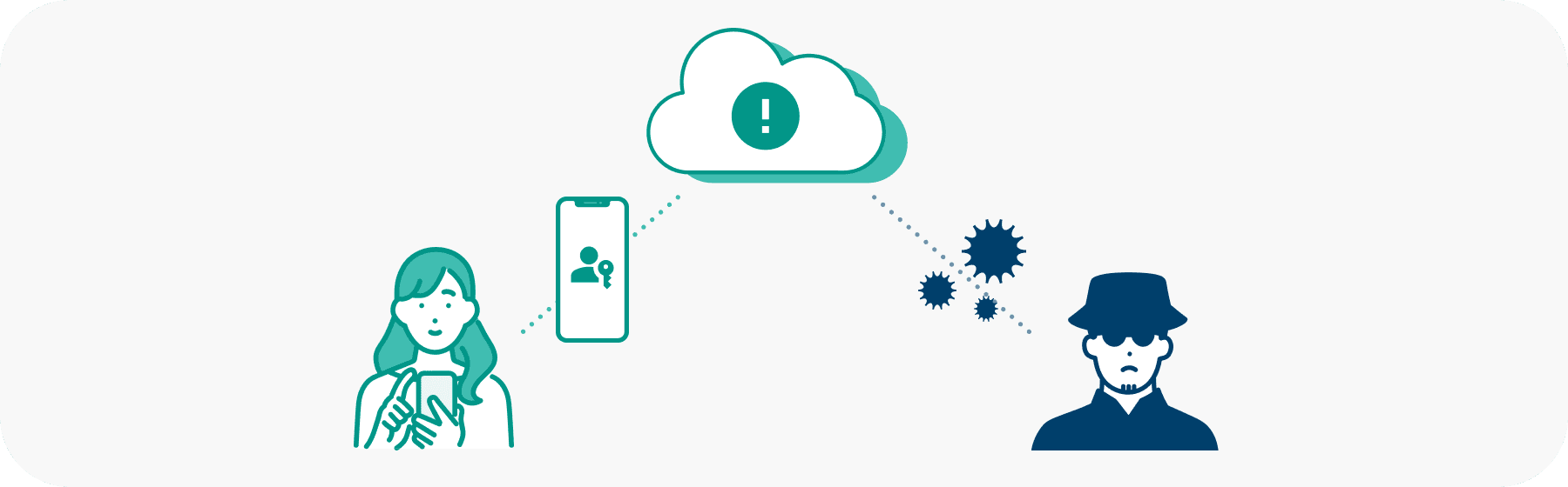 一部の端末やブラウザでは、パスキーをクラウド上で同期する機能があります。この場合、クラウドアカウントへの不正アクセスによって、同期されたパスキー情報や関連するPINなどが不正に利用されるおそれがあります。クラウド同期を利用する際は、クラウドサービスのログイン情報やデバイスロックのPINなどを第三者に知られないよう十分ご注意ください。また、ワンタイムパスワード(OTP)を複数の端末で同期している場合も、同様のリスクがあるため注意が必要です。