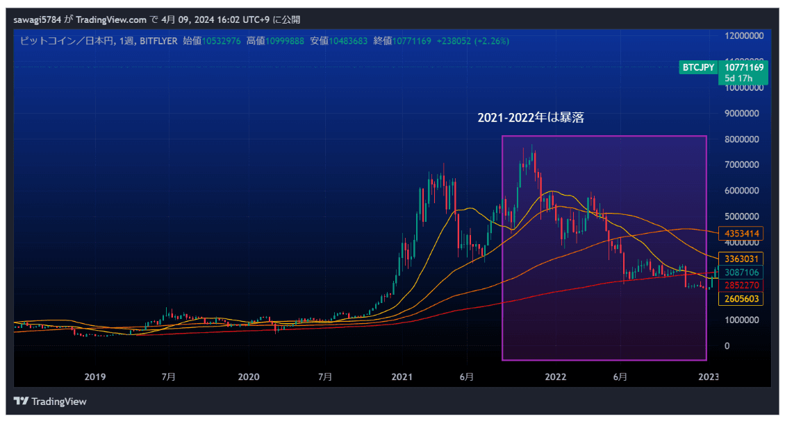 現物取引のみで進めた場合、2021年〜2022年は利益を出せるチャンスがほとんどありません。