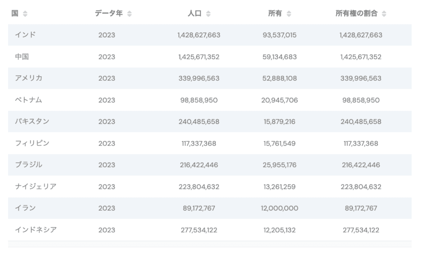さらに、暗号資産(仮想通貨)決済企業TripleAの調査によると、世界で仮想通貨を保有している人口は2023年時点で約4億2,000万人です。
