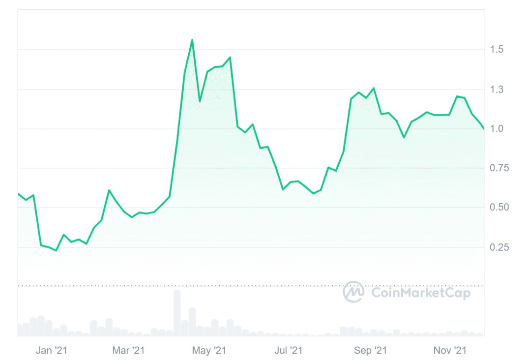 2021年に再びバブル相場が訪れ、XRP(リップル)の価格は1.5ドル程度まで上昇します。ただ、ビットコインやイーサリアムなど主要なコインは最高値を更新するなか、XRP(リップル)は最高値の半値程度であったため、期待どおりの価格ではありませんでした。