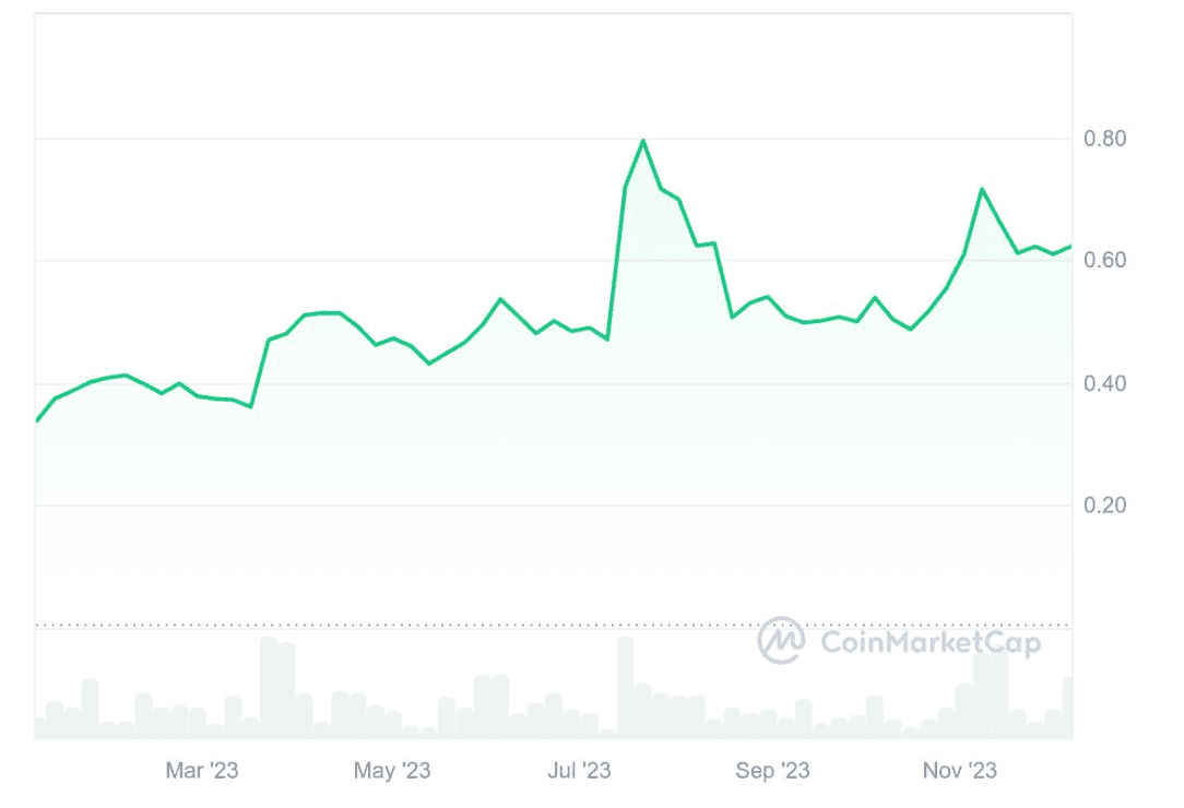 2023年7月13日にSECとの裁判で一部勝訴の判決が報道されたため、XRP(リップル)の価格は1日で0.47ドルから0.78ドルまで上昇します。