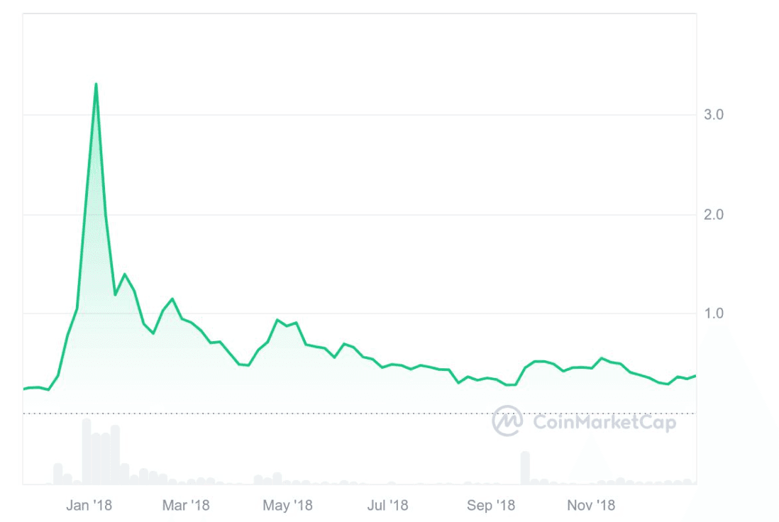 XRP(リップル)の価格はバブル相場により、約30倍まで高騰したものの、2019年には最高値から10分の1程度まで暴落してしまいます。