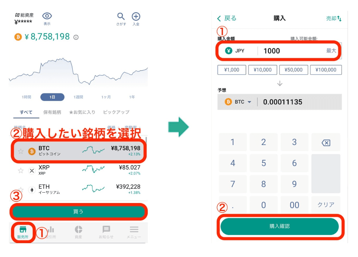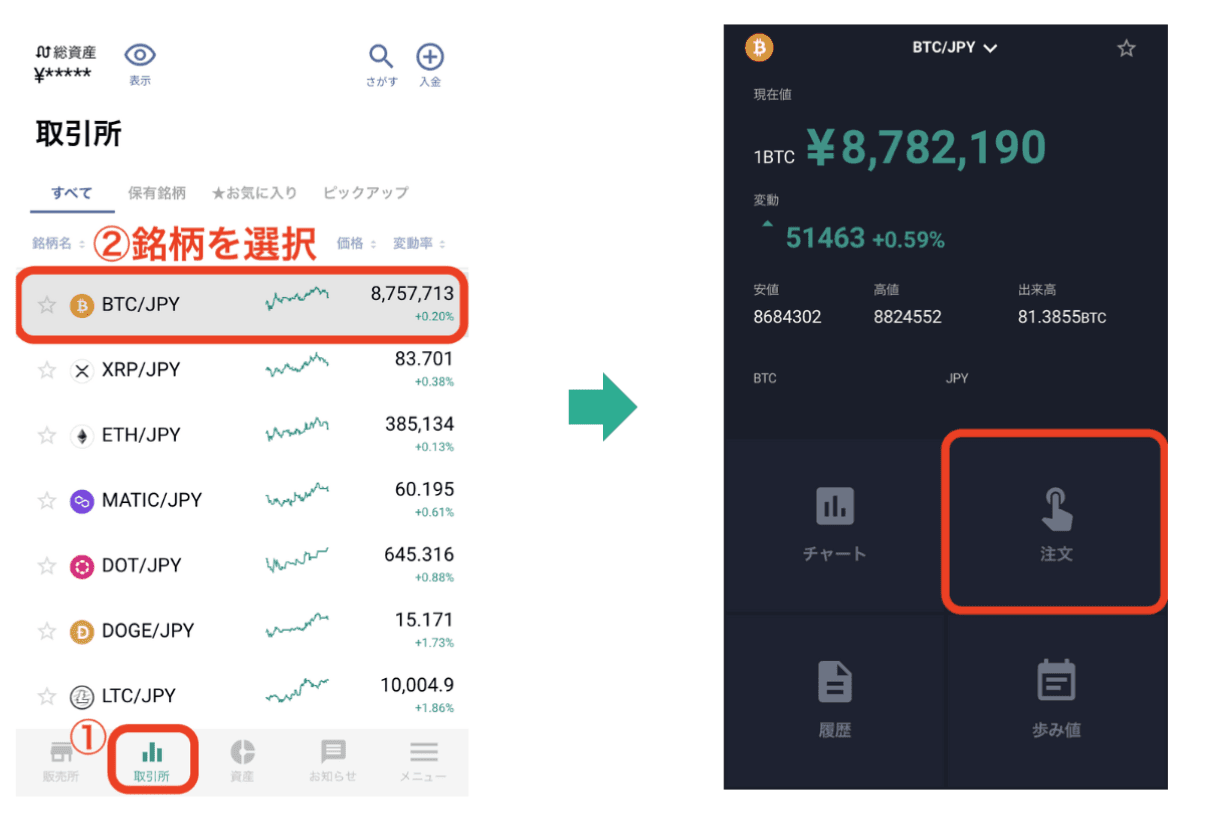 スムーズに取引を進めるためにも、販売所・取引所での買い方を事前に把握しておきましょう。