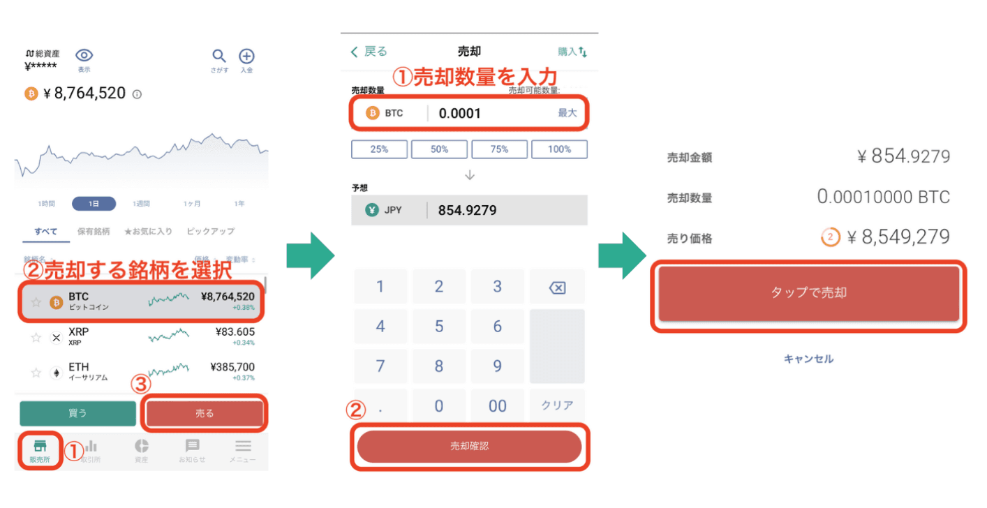 仮想通貨の売却は販売所と取引所で行えますが今回は販売所の使い方を紹介します。