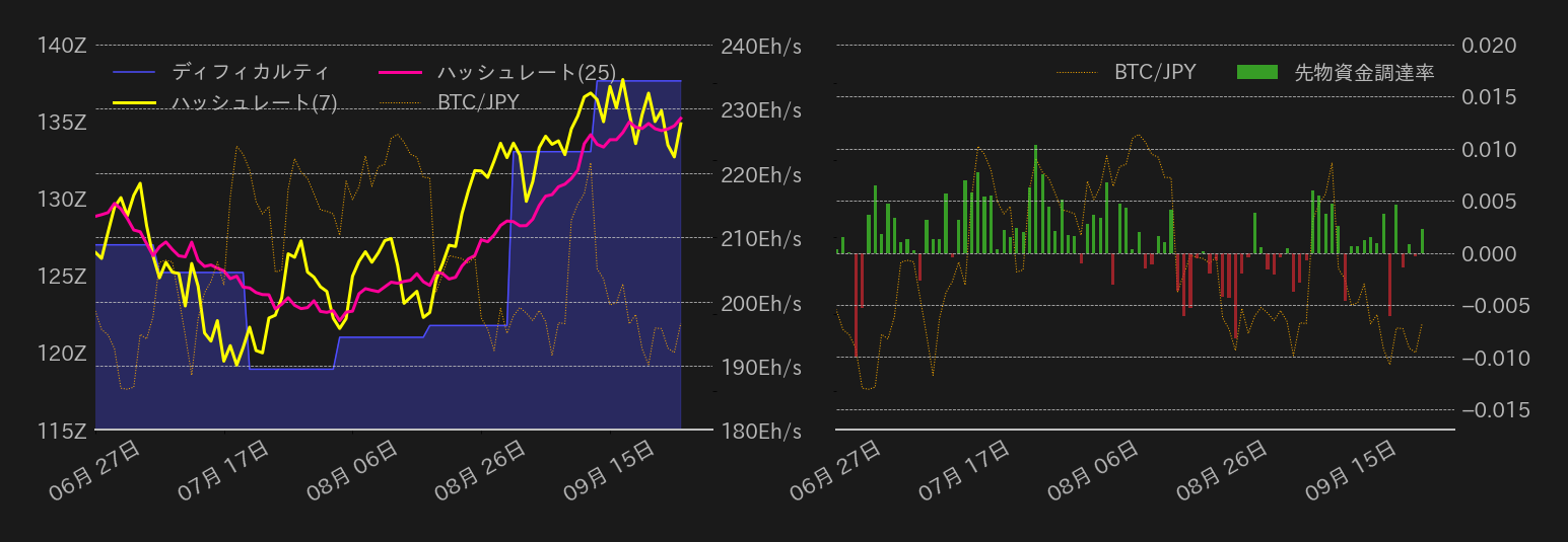 積極的な金融引き締めによる世界的な景気後退懸念の台頭や、OECDが世界経済の成長率見通しを引き下げ、リスク選好度が萎縮する中でのBTC相場の反発だったが、米英欧の記録的な金利上昇はやや気掛かりだ。金融ショックや通貨危機の可能性も浮上しており、暗号資産(仮想通貨)だけが弱気相場から脱却するとは考え難い。とは言え、米期待インフレの低下や、ビットコインのハッシュレート上昇は好感される。本稿執筆時点では、BTC相場は昨日の保ち合いをブレイクし20,000ドル(≒289万円)を試す展開となっており、短期的にはショートカバーが入る余地もあるだろう。同水準の上抜けに成功すれば、基準線や1σが位置する20,500ドル〜21,000ドルエリア(≒296万円〜304万円)が上値目途としてある。