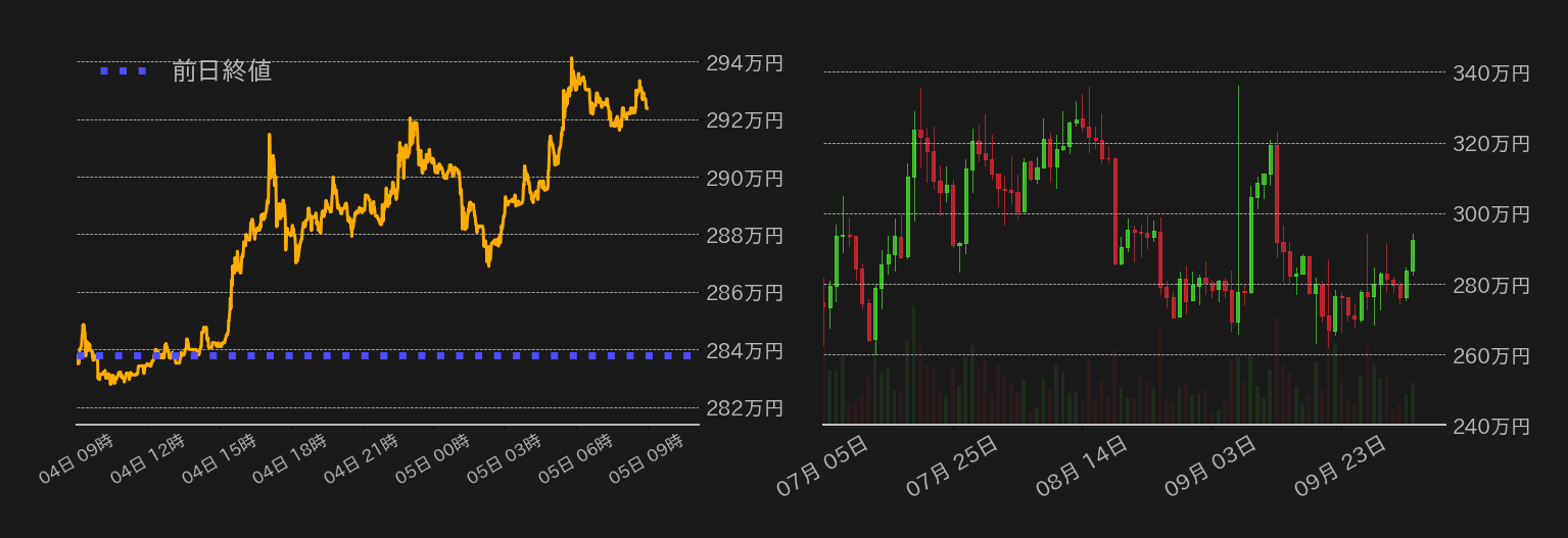 4日のビットコイン(BTC)対円相場は続伸し、対ドルでは20,000ドル(≒287.7万円)を回復した。オーストラリア準備銀行(RBA)の予想外の利上げペース鈍化を受けた米長期金利の更なる低下で280万円台後半に乗せたBTCは、警戒していたJOLTs求人件数の下振れで米国の金融引き締めペース鈍化期待が加速し290万円台を回復。NY市場序盤には若干押す場面も見られたが、米株に連れる形で上昇すると、マスク氏がTwitter買収を進める提案を出したことでドージコイン(DOGE)相場が急伸したことも追い風となり、294万円にワンタッチした。