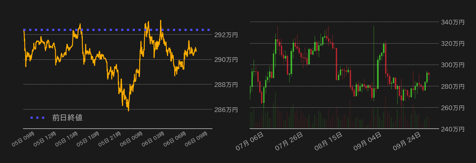 5日のビットコイン(BTC)対円相場は小幅反落。米連邦準備制度理事会(FRB)がタカ派的な姿勢を緩めるとの期待感から20,000ドル水準(≒289万円)を回復したBTCだったが、東京時間のこの日の相場は利食いが入り失速。海外時間に入ると伊国債利回り急伸に追随し欧米国債利回りが上昇した他、ADP雇用レポートやISM非製造業景況感指数が強めに出たことで、市場のFRBに対する期待感が後退し、BTCは一時20,000ドル水準を割り込み、280万円台中盤まで押した。一方、NY市場後半からは米株が押し目買いの様相で盛り返し、BTCも連れ高で下げ幅の殆どを奪回し、終値ベースで20,000ドル水準を維持した。