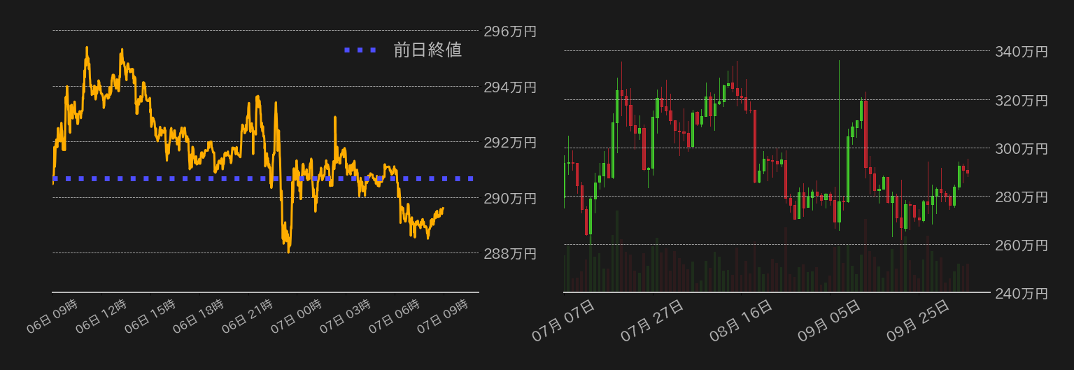 7日のビットコイン(BTC)対円相場は小幅に続落し、対ドルでは節目の20,000ドル(≒290万円)を僅かに下回った。前日から相場は280万円台中盤から戻りを試す展開を繰り広げ、この日の東京時間には4日高値の20,400ドル水準(≒296万円)上抜けをトライしたが、同水準で失速。海外時間に入ると英米債利回り上昇を受けた米株先物の下落に連れ安となると、本日発表の米雇用統計の結果を警戒し下げ足を速め、一時290万円を割り込んだ。その後は、米国債利回りの上昇一服もあり290万円を回復したが、今朝方にバイナンスチェーンの停止を受けたBNB相場の急落に連れ安となり、終値で再び290万円を割り込んでいる。