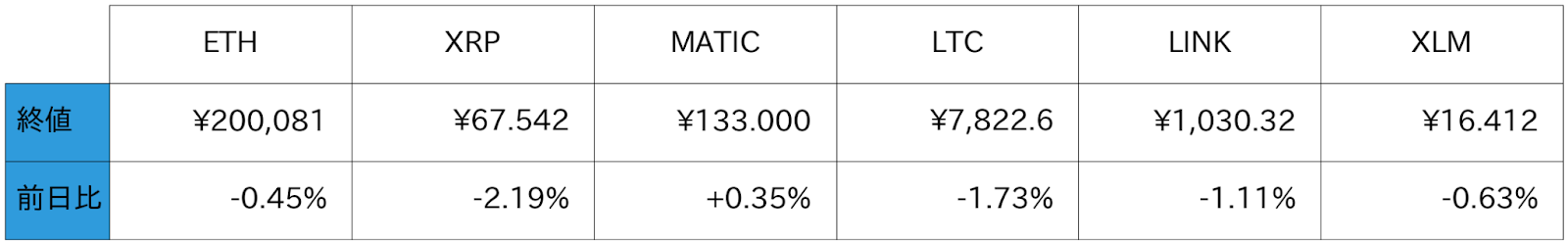 今週はシカゴマーケンタイル取引所(CME)のBTC先物が大きくギャップアップして取引を開始したが、昨日の下げで窓埋めを完了し目標達成感もうかがえる。FRBの11月以降の利上げペースを巡っては、依然として警戒感が拭いきれない状況となっているが、今夜は米住宅関連指標の発表を控えており、先週の住宅着工件数と同様に需要後退が示されれば、利上げペース減速への期待感からBTC相場の反発が期待される。ただ、昨日も指摘の通り、BTC対ドルは20,000ドル(≒298万円)周辺に一目均衡表の雲下限が位置していることや、同水準より上ではオプション絡みの売りが入りやすいと言えることから、本日も上値余地は限定的だろう。