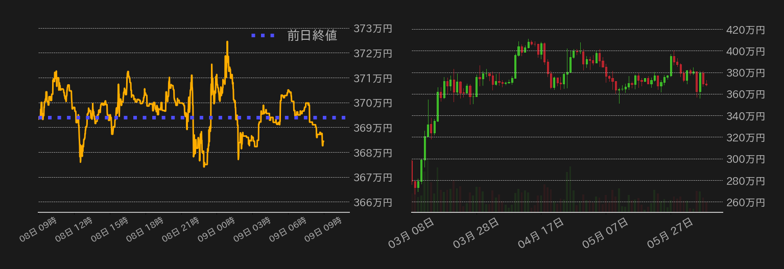 8日のビットコイン(BTC)対円は370万円周辺で下げ渋りほぼ横ばいとなった。米証券取引委員会(SEC)から提訴され渦中のバイナンスと同社CEOのCZだが、昨日はCZがオフショア企業を通じて顧客資産を受け取っていたとSECの裁判所への提出資料で明らかとなったものの、市場の反応は薄かった。寧ろこのところ相場が強く押していたアルトコインの売りが一服し、東京時間のBTCも下げ止まった。その後、米新規失業保険申請件数の急増を受けて、ドル安円高が相場を圧迫したが、米国債利回りの低下や米IT株の上昇が相場の支えとなり、底堅い推移が続いた。