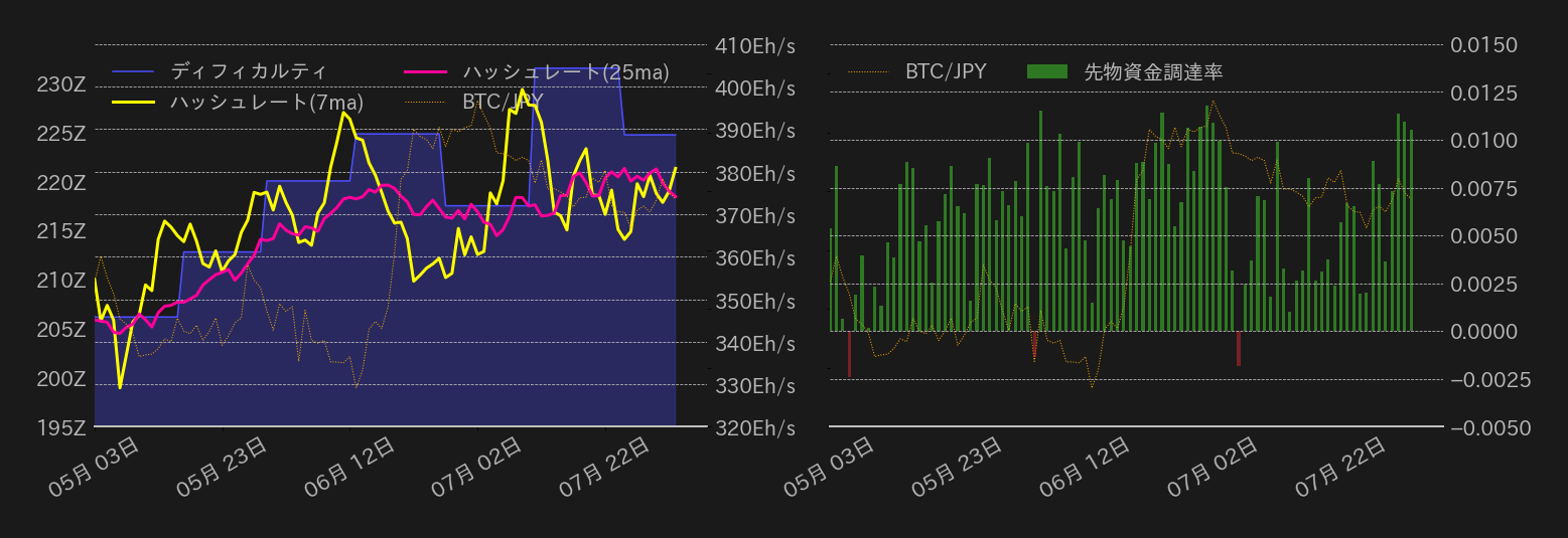 3日のビットコイン(BTC)対円は2日続落し、今週火曜日の上げ幅をほぼ解消した。東京時間のこの日の相場は下げ一服感から420万円回復を試すも、米債格下げによる長期債利回り上昇が重石となり、終盤にかけて29,000ドル(≒416万円)割れを試した。一方、相場は節目の水準で買い支えられると、全米供給管理協会(ISM)が発表した7月サービス業購買担当者景気指数(PMI)が市場予想を下回り反発。しかし、その後相場は29,500ドル回復を試したものの、本日の米雇用統計を控え米株の上値が圧迫されたことや、ドル円相場の下落(ドル安円高)が円建てBTC相場の重石となり、相場の戻りは限定された。