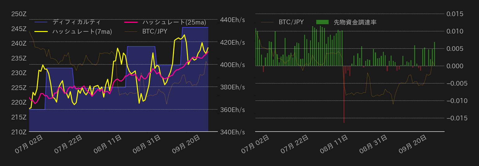 10月2日のビットコイン(BTC)対円は上値トライの後反落し、420万円乗せに失敗した。週末に米議会が11月17日までのつなぎ予算案を可決したことで、2日朝方のBTCは407万円から420万円近辺まで急伸すると、それまでのリスク回避ムードが巻き戻した他、BTCはドル建てでも一目均衡表の三役好転が完成し、昨日は28,000ドル水準(≒419.6万円)に乗せ上値を試す展開で始まった。一方、米時間に発表された全米供給管理協会(ISM)の9月製造動向レポートで購買担当者景気指数(PMI)や雇用指数が上振れとなると、BTCは米長期金利の上昇に逆行安となり、ロングの投げを伴って上げ幅を完全に掻き消した。ドル建てでは、終値での200日線や一目均衡表の雲上限の維持に失敗し、27,000ドル台中盤まで押している。