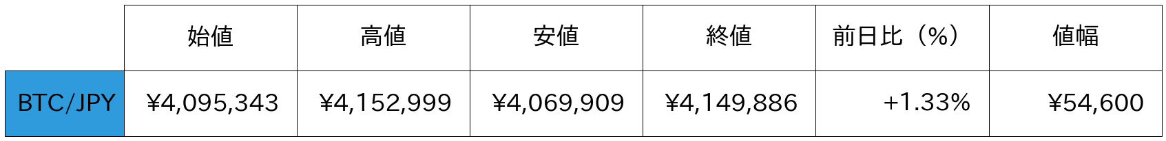 4日のビットコイン(BTC)対円は反発し、409.5万円から410万円台中盤まで戻した。米債利回りの上昇が相場の重石となる中、昨日はADP雇用統計で月間民間雇用者数の伸びが大幅に下振れた他、全米供給管理協会(ISM)の9月サービス業購買担当者景気指数(PMI)や同雇用指数が前月から悪化し、米国債売りに歯止めが掛かった。さらに、米エネルギー情報局(EIA)発表の週間ガソリン在庫が、市場予想の+20万バレルに対して+650万バレルとなった他、ロシアが燃料輸出禁止を近々緩和する可能性が報じられ、原油価格が急反落。これが物価上昇圧力の後退観測に繋がり、米時間のBTC相場は戻りを試す展開となった。