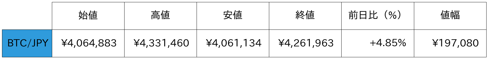 16日のビットコイン(BTC)対円は大幅に続伸し、8月中旬の下げをほぼ奪回した。米証券取引委員会(SEC)によるグレイスケールの現物型ビットコイン上場投資信託(ETF)の再審査が確実視される中、東京時間のこの日の相場は406.4万円からジリ高で始まると、終盤にかけて418万円まで一気に踏み上げた。その後、米時間に入ると、SECがブラックロックのビットコインETFを承認したとのニュースが流れ、BTCは一時30,000ドル水準となる433.1万円まで急騰したが、これが誤報であると伝わると、すかさず上げ幅を掻き消した。ただ、この日は米金融当局者によるハト派的な発言や、企業決算を楽観視した米株の上昇を背景にその後のBTC相場は上昇基調を維持し、8月16日ぶりに終値で420万円を回復した。