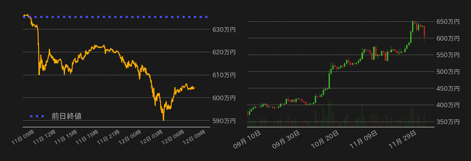 11日のビットコイン(BTC)対円は下値を模索する展開となり、一時は先週の上げ幅を解消した。テクニカル的な過熱感に加え、米連邦公開市場委員会(FOMC)を控える中、東京時間のこの日の相場は利食い売りによりロングの投げが発生し、635万円から608万円まで急落を演じた。その後は自律反発の様相でやや戻すも、620万円を回復すると戻り売りが入り、海外時間は概ね下げ一色となった。昨日はエリザベス・ウォーレン米上院議員が主導するデジタル資産AML法案に追加で5名の議員が署名したことも材料視された。ただ、相場がドル建てで節目の40,000ドル水準(≒583.2万円)に肉薄すると、押し目買いが入り、終値にかけて相場は600万円を回復した。