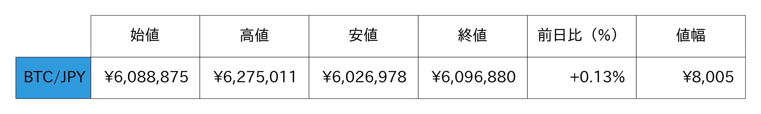 19日のビットコイン(BTC)対円はほぼ横ばい。前日にブラックロックが米証券取引委員会(SEC)に申請している現物型ビットコイン上場投資信託(ETF)の組成・償還設計が決定し、この日のBTCは上値を追う展開で始まると、日銀が政策維持を発表したことを受けたドル円相場の上昇も相場の支援となり、BTCは608.8万円から627.5万円まで戻した。一方、海外時間に入ると相場が失速し、米時間には利食い売りに伴うロングの投げが相場の重石となり、一時は603万円周辺まで反落した。ただ、この日も米株が確りとなったことで、その後のBTCはやや下げ幅を縮小した。