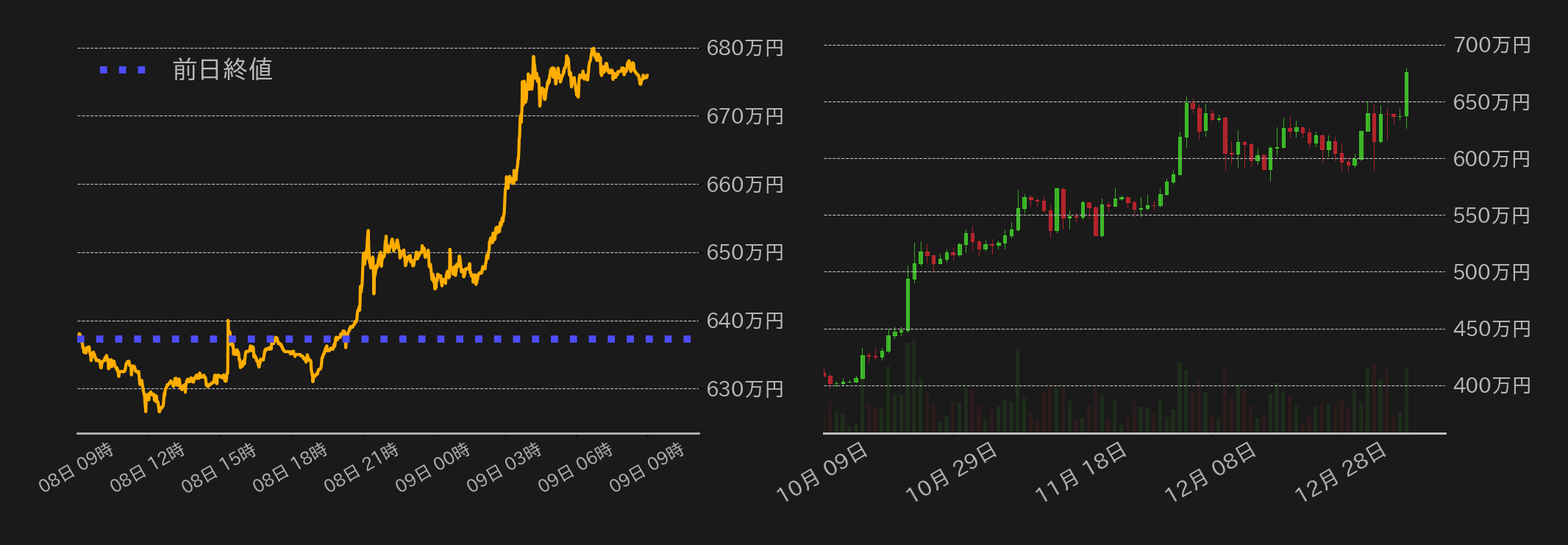8日のビットコイン(BTC)対円は上伸し、保ち合い上抜けに成功した。この日は米国で現物ビットコイン上場投資信託(ETF)を申請する各社が最終修正書類を米証券取引委員会(SEC)に提出した他、各社がETFの手数料を公表したことで承認への機運が高まった。また、SECのゲリー・ゲンスラー委員長は昨日、暗号資産(仮想通貨)投資に関する注意点をX(旧Twitter)に連投したことで、ETFの承認が間近に迫っていることを匂わせた。こうしたETF絡みの動きを受け、BTCは海外時間から上値を追う展開を繰り広げ、本日未明には踏み上げ相場となり680万円にタッチした。これによりBTCは一月ほど続いた保ち合いからの上放れに成功し、2023年の高値も更新した。