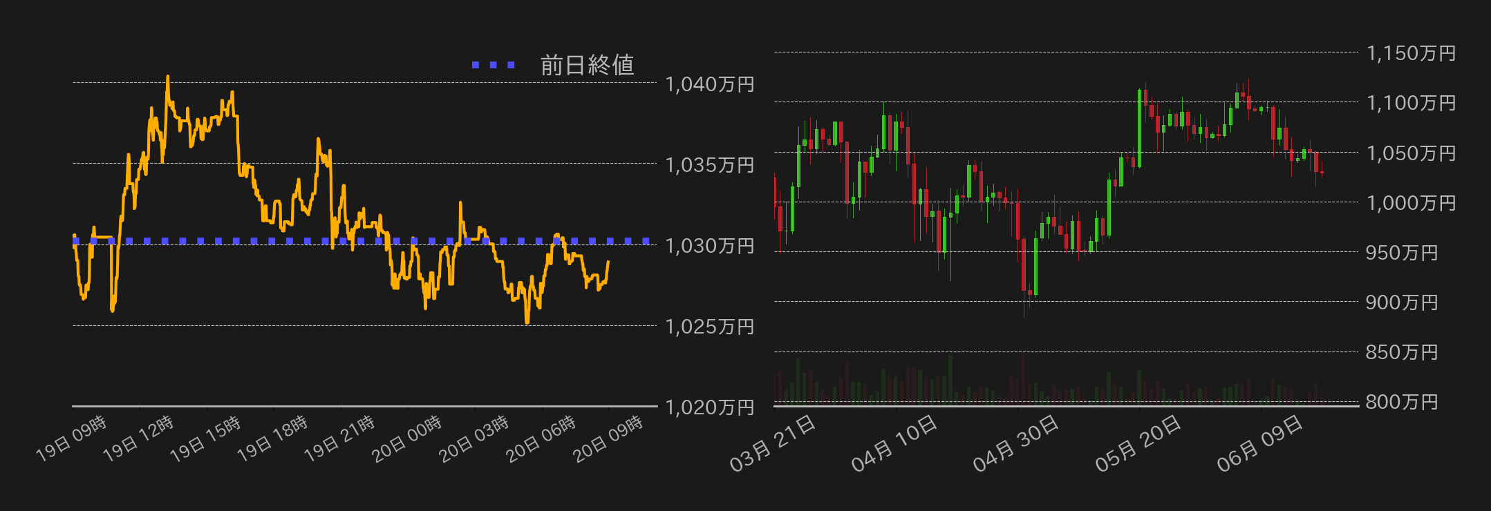 19日のビットコイン(BTC)は概ね小幅な揉み合いに終始し、終値はほぼ変わらずだった。米証券取引委員会(SEC)がイーサリアムの証券性を巡る調査を打ち切ったことが明らかとなり、東京時間のこの日のBTC円はイーサ(ETH)相場の上昇に連れ高となり、1040万円にタッチ。しかし、上昇一服後には戻り売りが入り上げ幅を解消すると、昨日は米市場が休場だったこともあり、その後は1030万円周辺での揉み合いに転じた。結局、終値まで目星い材料もなく、朝方の上昇を主導したETH相場も上昇後に揉み合いに転じ、BTCはドル建てで節目の65,000ドル水準となる1027万円周辺で一進一退の値動きに終始した。