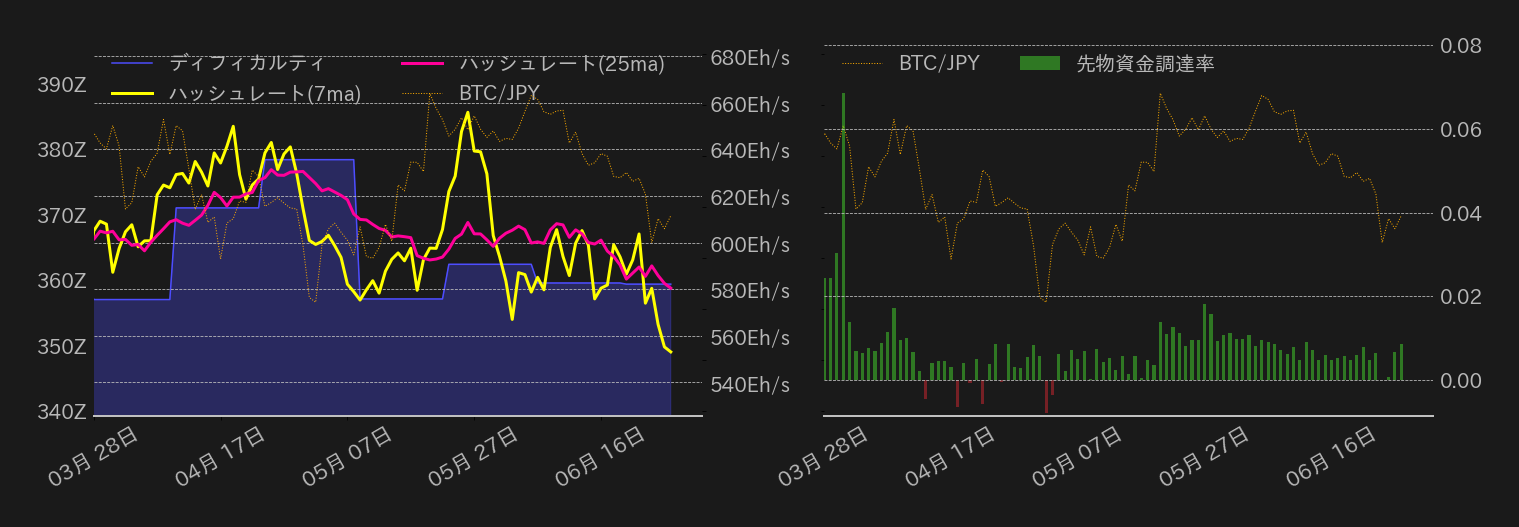 BTCドルは想定通り62,000ドルを試す展開となったが、本日発表される5月の米個人消費支出(PCE)価格指数を控え、上値は限定された格好だ。5月は消費者物価指数(CPI)や卸売物価指数(PPI)といったインフレ指標の伸び鈍化や、消費の減速がデータで示されており、PCE価格指数も緩慢ながら鈍化基調を維持すると指摘され、どちらかと言えばBTC相場には追い風になると見ている。週明けの相場急落以降、今週のBTCは小動きが続いていたが、本日はさらに下げ幅を縮小し、65,000ドル(≒1047万円)周辺まで戻す余地があるだろう。一方、相場は依然として高値レンジの下半分で推移しており、レンジ下限も射程圏内と言える。昨日も指摘の通り、相場が60,000ドル(≒966.5万円)の維持に失敗すれば、売りが加速する展開に警戒しておきたい。