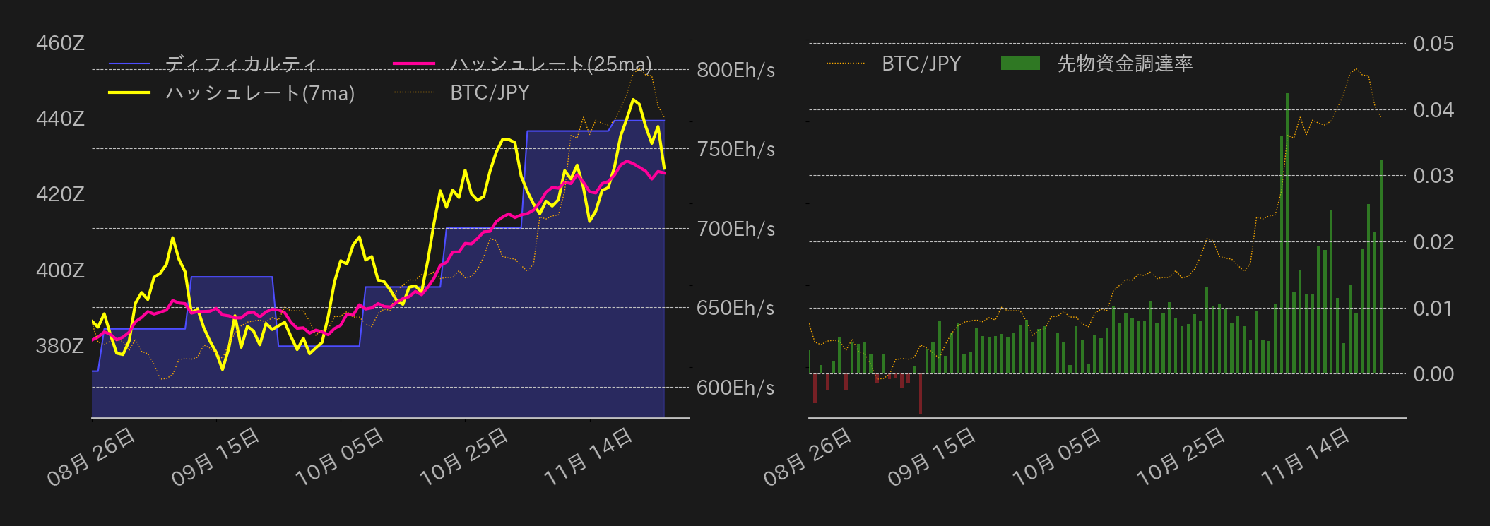 26日のビットコイン(BTC)円は1438万円から取引を開始した。前日の急落の反動で、東京時間序盤の相場は戻りを試す展開となり、1470万円近辺まで水準を戻した。しかし、ドル建てで95,000ドルとなる同水準で失速すると、海外勢参入後には戻り売りが入り、1410万円周辺まで下落した。米国時間序盤に入ると、再び安値拾いの買いが入り反発したが、この日もコモディティ市場の下落につれる形で戻り売りが入り、一時は1400万円を割り込んだ。一方、注目されたFOMC議事要旨では、利下げペースについて会合参加者の意見が割れていたことが明らかとなったが、市場は織り込み済みで寧ろ12月の利下げ観測が若干高まり、BTCは下げ止まった。終値は1410万円だった。