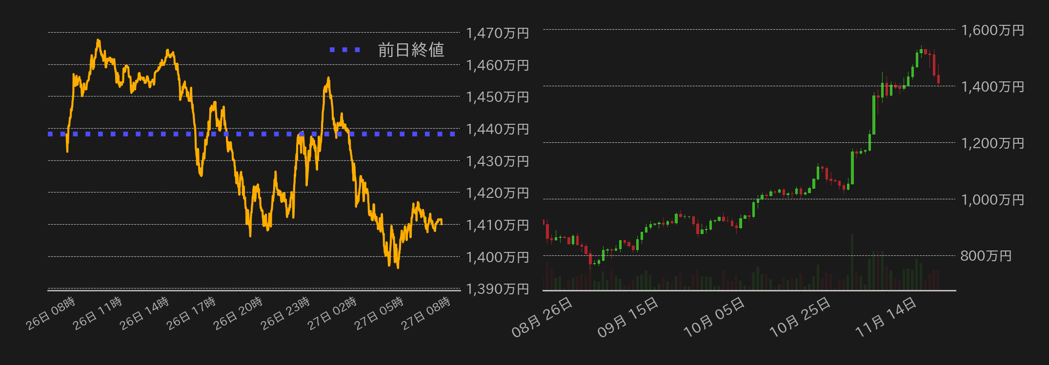 bitbank Report 2024/11/27:BTC円続落も1400万円を維持 安値拾いと利食いで鬩ぎ合い