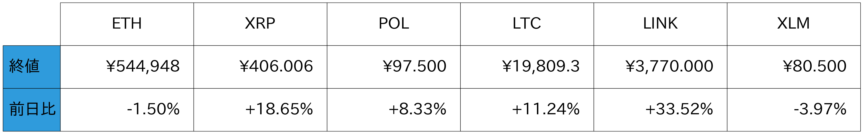 第3表:アルトコイン概況 出所:bitbank.ccより作成