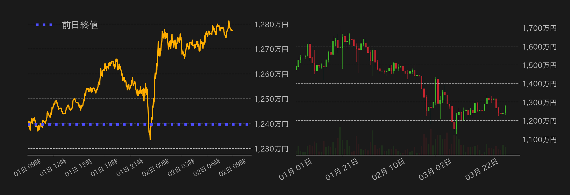 4月1日のビットコイン(BTC)円は1239万6760円から取引が始まった。トランプ米政権による相互関税の発表を明日に控え、東京時間は米長期金利の低下を眺め、BTCは段階的に戻りを試す展開となり、欧州時間序盤には1260万円台を回復した。一方、その後は上げ幅を縮小すると、ISM製造業景気指数(PMI)とJOLTs求人件数の下振れを受けて、米国経済の先行きへの懸念から1233万円まで急落を演じた。しかし、景気減速に伴うFRBによる景気刺激策への期待感もあり、相場はすかさず切り返すと、序盤の米国株相場の上昇も支援となり、1270万円を回復。その後はこの日の高値で揉み合いに終始し、終値は1277万2378円となった。