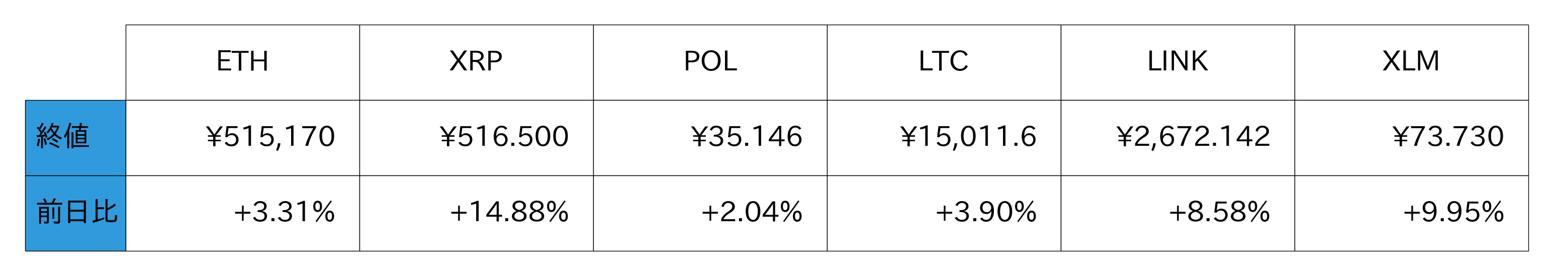 bitbank Report 2025/07/18:クリプトウィークに進展でBTC小幅続伸 アルトターン収束待ちか
