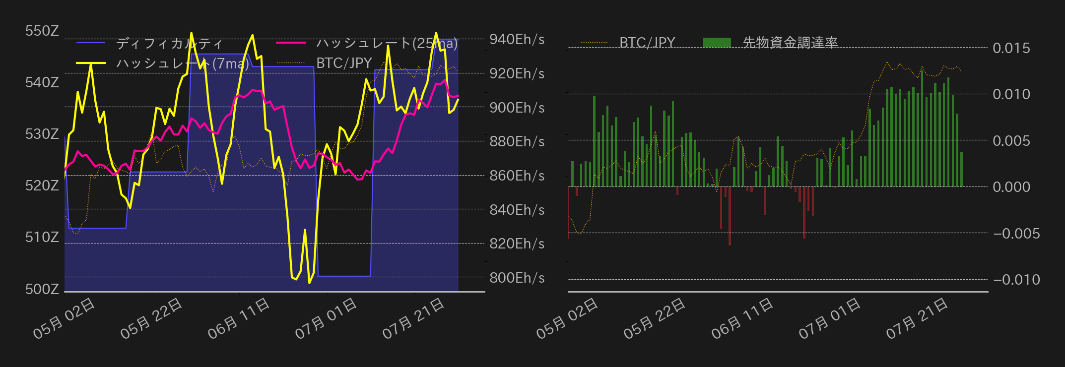 FRBがタカ派的な姿勢を崩さないなか、昨日の米経済指標は軒並み政策金利の維持を正当化する結果となり、短期金利の上昇がBTC相場の重石となった。本日は7月の米雇用統計を控えており、パウエルFRB議長が注目する失業率は4.1%から4.2%に上昇することが予想されている。これだけで利下げ期待を復活させられるかは微妙なラインと言えるが、少なからず足元の金利上昇に歯止めが掛かる可能性がある。ただ、ドル建てBTC相場は短期下降チャネルを下抜けしており、テクニカル的なセンチメントは悪化していると言える。CMEのBTC先物では、およそ3週間前に開けた約2000ドル幅(≒30万円)の窓を埋めにいく展開も視野に入ってきており、相場の続落には十分に注意しておきたい。
