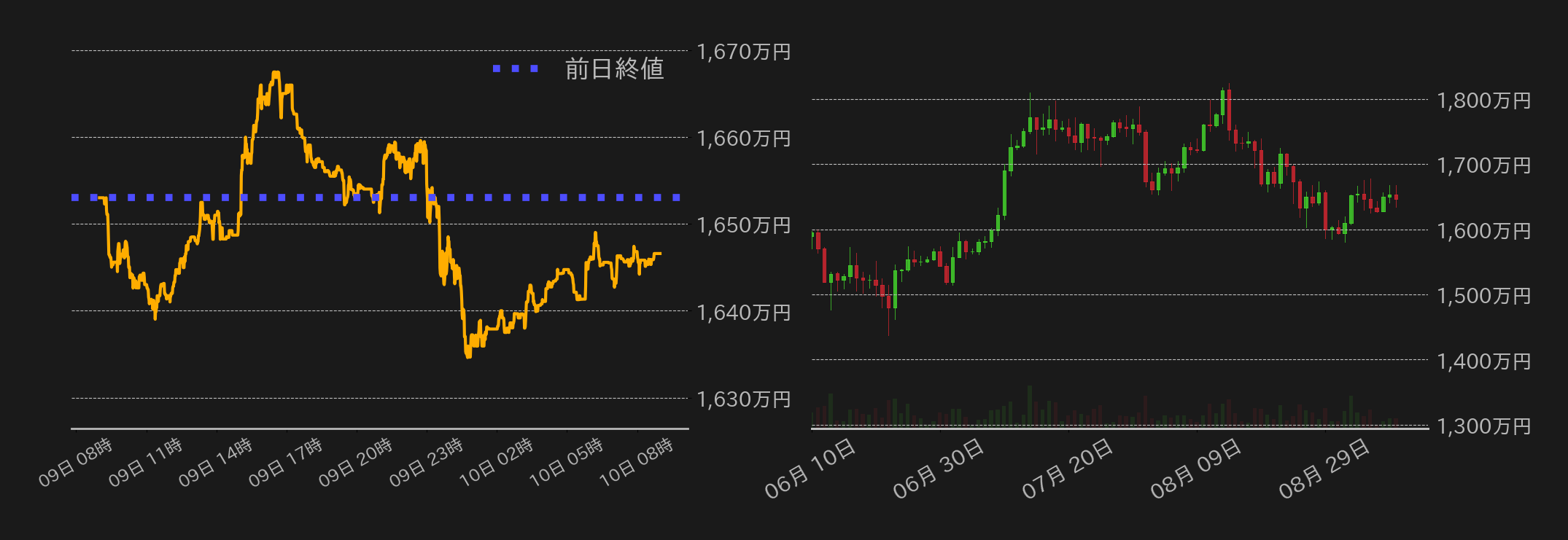 9日のビットコイン(BTC)円は1653万円から取引が始まった。東京時間序盤は1640万円まで水準を下げるも、売り一服後は押し目買いの様相で下げ幅を奪回し、終盤には1667万円周辺まで上昇して先週の雇用統計後の下げ幅を更に縮小した。一方、欧州時間に入るとドル円相場の下落が相場の重石となり、1650万円近辺まで押した。注目された米雇用ベンチマーク改定では、3月までの12カ月間の雇用創出が従来より91.1万人少ない結果となると、ロングの投げを伴って1634万円まで急落。しかし、米連邦準備理事会(FRB)による利下げ期待によってその後はジリ高に推移し、終値は1646万5827円となった。