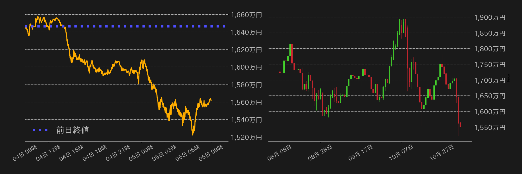 4日のビットコイン(BTC)円は1646万1635円から取引が始まった。3日発生したバランサーの事件で不正流出した資金がイーサ(ETH)にスワップされていることが明らかになり、東京時間のBTCは1620万円を割り込み、その後も小甘い推移が続いた。欧州勢参入後には1600万円周辺で下げ止まるも、AIバブル崩壊懸念を背景とした米主要株価指数の下げに連れ、米国時間序盤には完全に1600万円を下抜けた。また、昨日は複数の大手米銀CEOが10%〜20%の株価調整を予想したことや、仏半導体メーカーのシークアンスが保有BTCの一部を売却したと明かしたことも市場心理を悪化させた。米国時間終盤のBTCは10万ドル(≒1534万円)を一時割り込んだが、今朝方には水準をやや戻し、1561万7388円でこの日の取引を終えた。