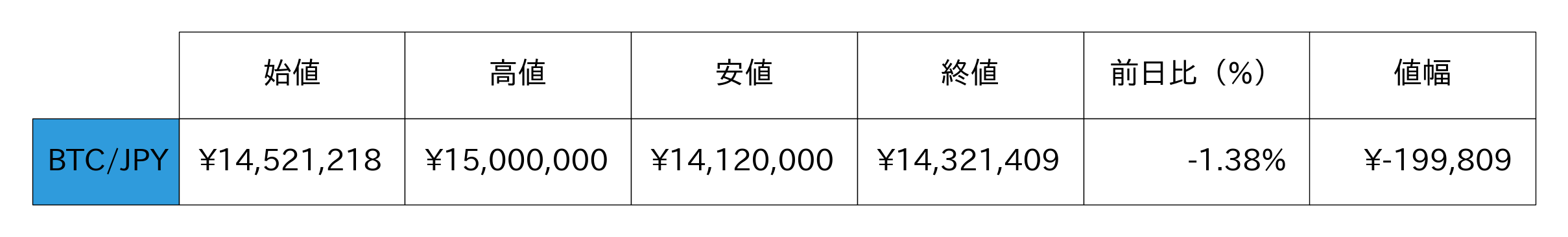 4日のビットコイン(BTC)円は1452万1218円から取引が始まった。東京時間は9万4000ドル水準となる1460万円を試し、一時はショートカバーを伴って1500万円にタッチするも、その後は買いが続かず、元の水準まで押し返された。欧州勢参入後は小甘い推移に転じ、1440万円近辺まで下落すると、11月29日までの1週間の米新規失業保険申請件数が市場予想に反して減少したことで、米国時間序盤のBTCは1424万円まで下落した。しかし、来週の米連邦公開市場委員会(FOMC)で政策金利が引き下げられるとの見方は根強く、その後のBTCは不安定ながらも底堅く推移し、終値は1432万1409円と小幅な下落にとどまった。