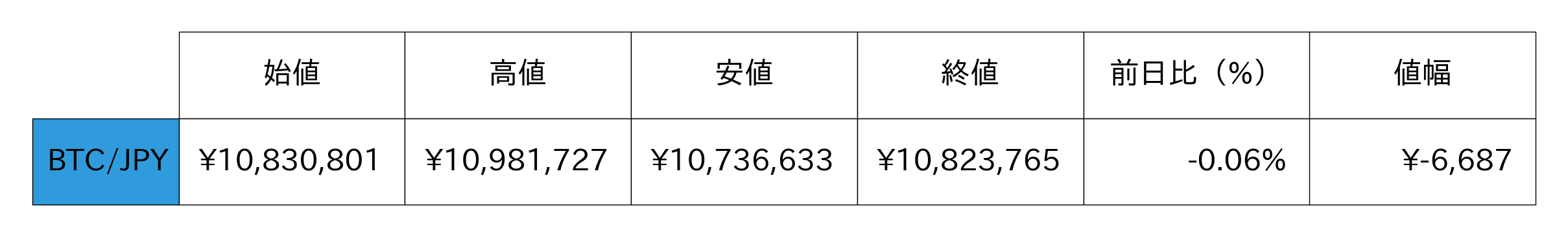 4月1日のビットコイン(BTC)円は1083万0801円から取引が始まった。イラン紛争の収束期待から東京時間のBTCはジリ高となり、高値1098万1727円に浮上した。しかし、カタールのタンカーが同国領域内で攻撃を受けたとの報道を背景に原油価格が上昇すると、BTCの上値は圧迫され、欧州勢参入後には1080万円台中盤に下落。その後発表された一連の米経済指標が景気の底堅さを示したことで、米政策金利の据え置き長期化観測が強まり、米国時間序盤には1080万円近辺まで水準を下げた。尤も、紛争の収束期待から米国株はこの日も上昇し、BTC相場の下支えとなり、強弱材料が交錯し、綱引き状態となるなか、BTCは1080万円台で揉み合いとなった。終値は1082万3765円とほぼ変わらずだった。