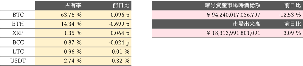 いずれにせよ、「保ち合い放れにはつけ」が相場の鉄則であり、目先は上値の重い展開が予想される。特に、足元の下げはアルト主導と考えられるため、アルト売りが一巡するまでは相場の下降トレンドは続きそうだ。ただ、長期的なテクニカルとファンダメンタルズに変わりはないと言え、足元のトレンドは1〜2週間程度のスピード調整に終わると見ている。