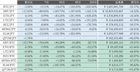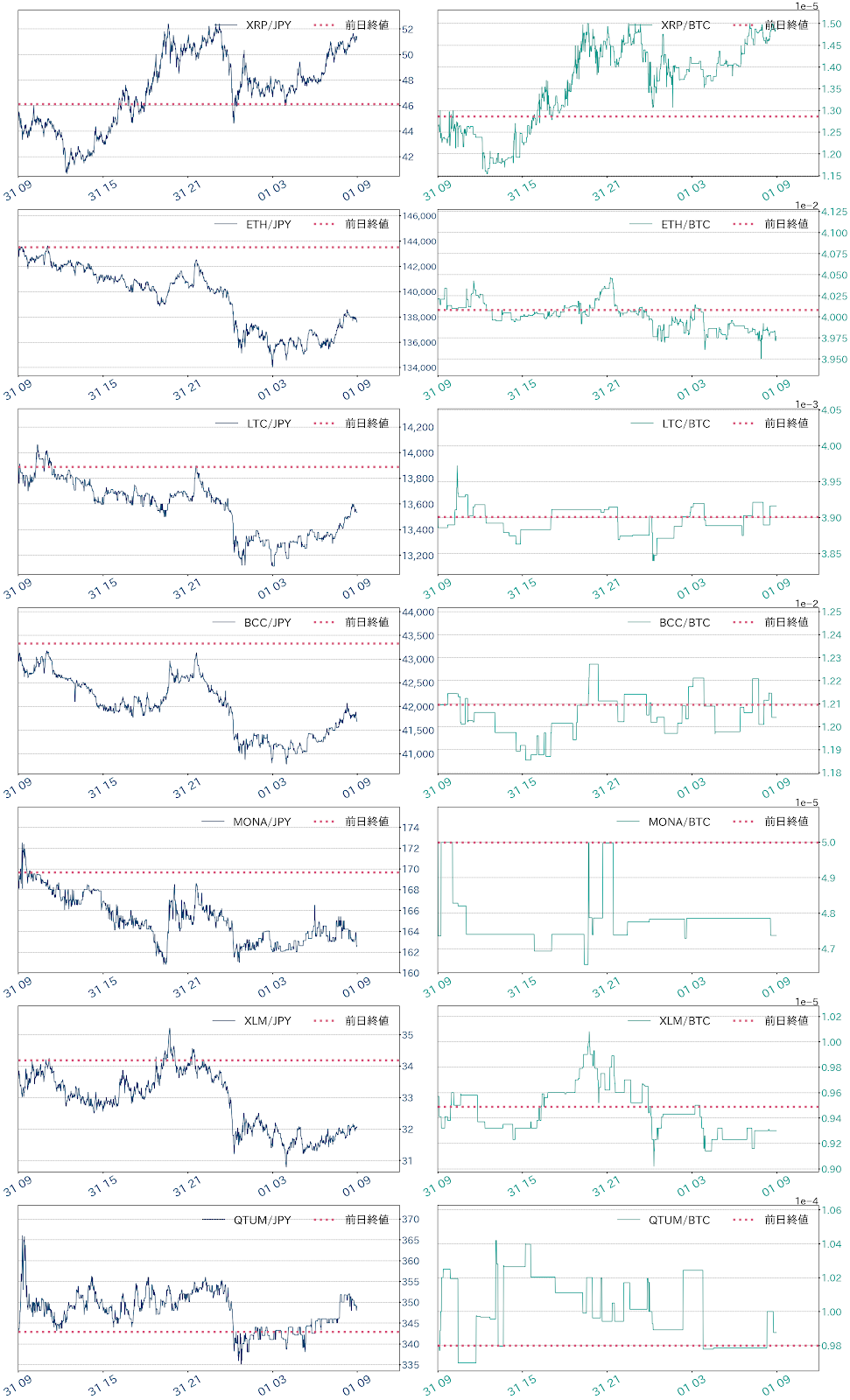 週末にはReddit勢の買いがXRPへと乗り替わり、訴訟問題で低迷していたXRP相場を土日の二日間で30円周辺から一気に52円台まで急騰させたが、BTCはマスク砲の不発で様子見ムードが広がりジリジリと値を安くしている。