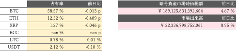 週明けからのリスク選好度改善に加え、ノルウェーのエーカーグループが新子会社を設立し1,170BTC(≒70億円)の購入を発表したことや、ブルームバーグのアナリストがビットコインが貴金属にとって代わって価値の保存手段として地位を高めているとの分析が追い風となり、BTCの対円相場は8日にレンジ上限の554.5万円の上抜けに成功。9日の東京市場時間には一段高となり、590万円台に乗せた。