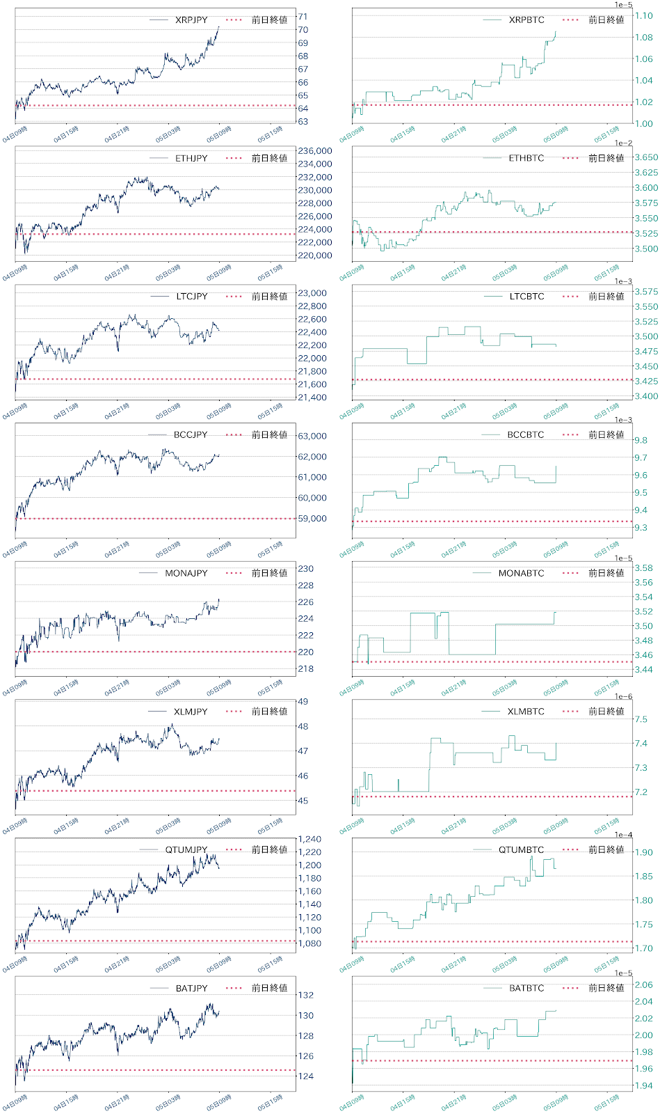 アルトコイン高続く仮想通貨市場 本日からBTCに買い手戻るか