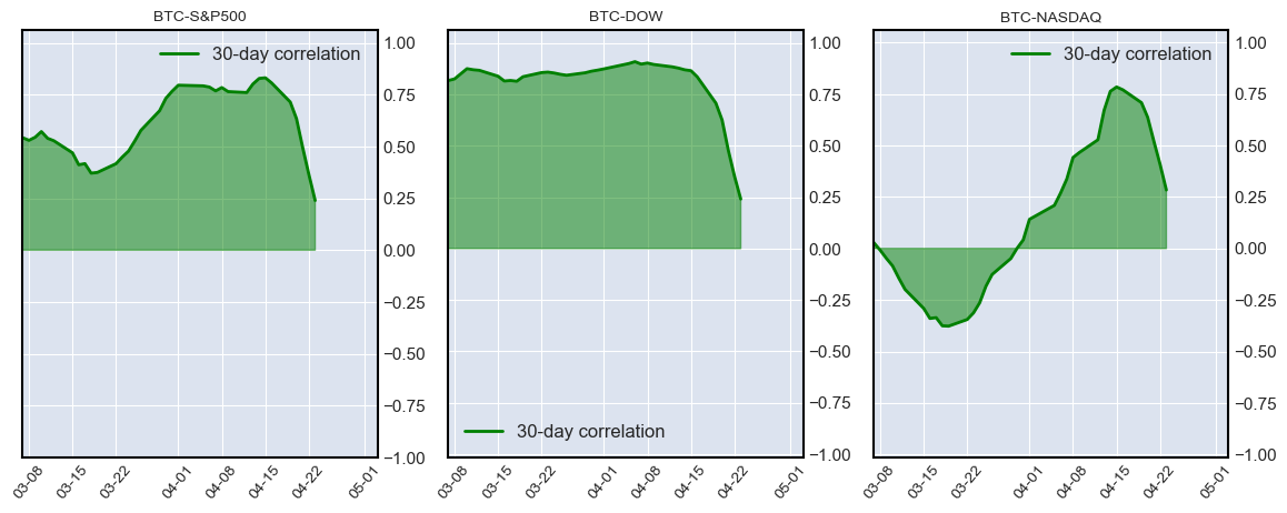 過去30日間では、ビットコインの米主要3指数との相関も崩れており、仮想通貨市場外の要因よりもテクニカル的な要因で売りが出ていることが指摘される(第2図)。