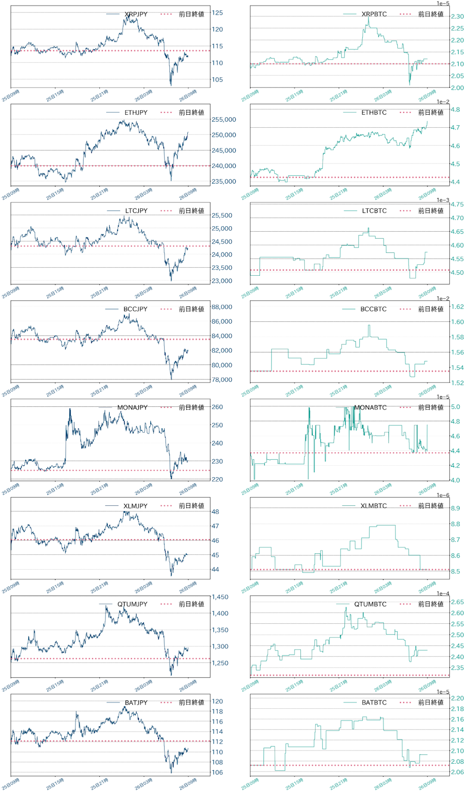 全体的に悲観ムードが漂う形となっているが、アルトシーズンを主導し得るETHの対円は安値を切り下げることなく、対BTCでは上昇トレンドを維持しており、今週は、①ハッシュレート復調による需給悪化懸念の後退、②ETH主導のアルトコイン反発が見込まれ、ビットコインは今度こそ下げ止まりを予想する。