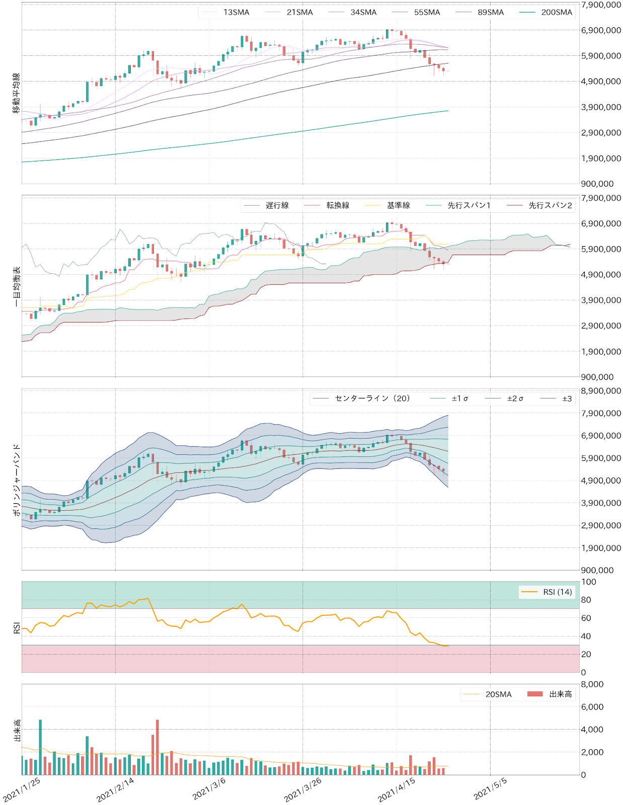 bitbank Report 2021/0426/:BTC悲観一色もETHは逆行高 米株との相関が崩れた背景とハッシュレート回復は何を示唆するか