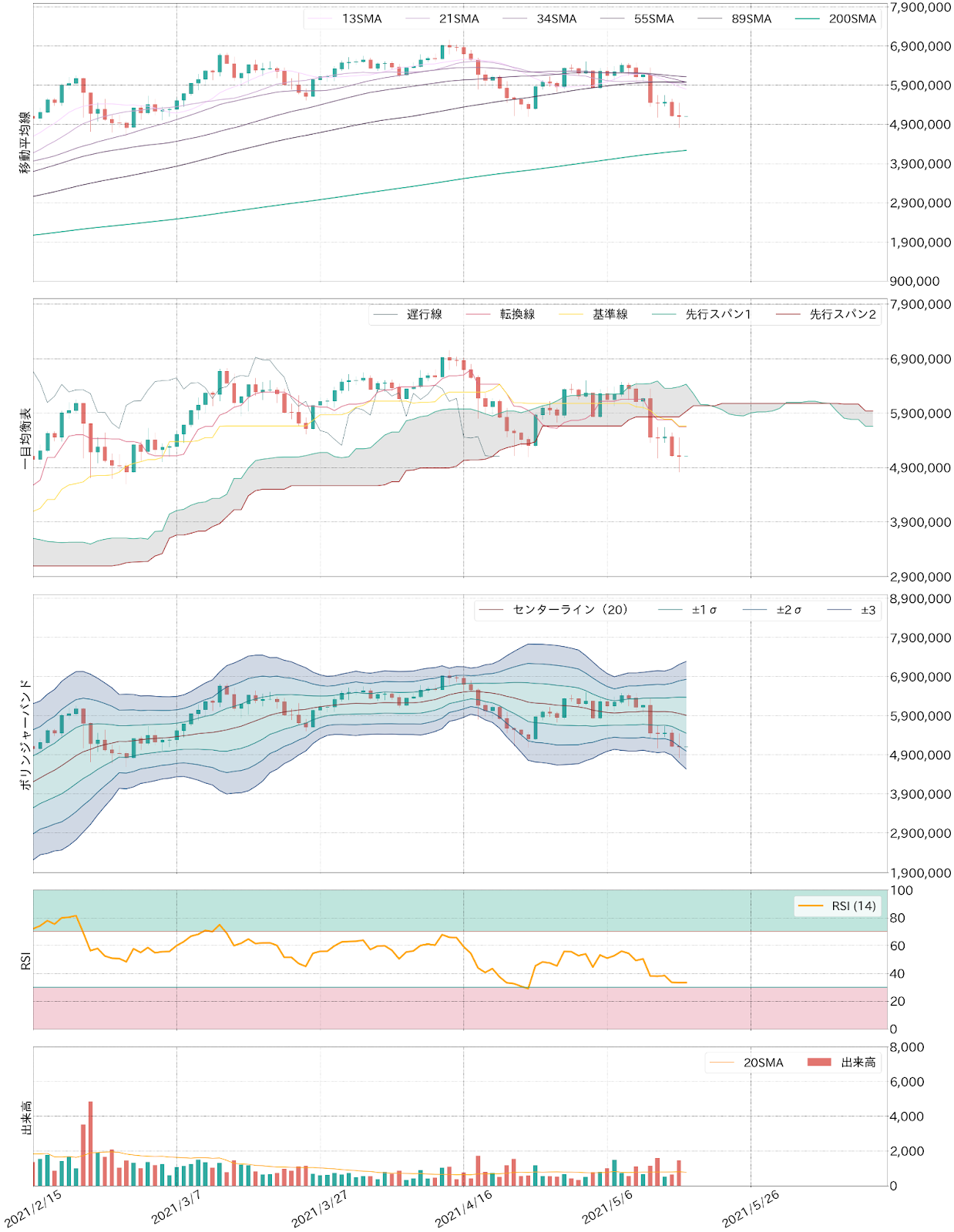 bitbank Report 2021/05/17:ビットコイン500万円割れ 相場もツイッターも大荒れ模様
