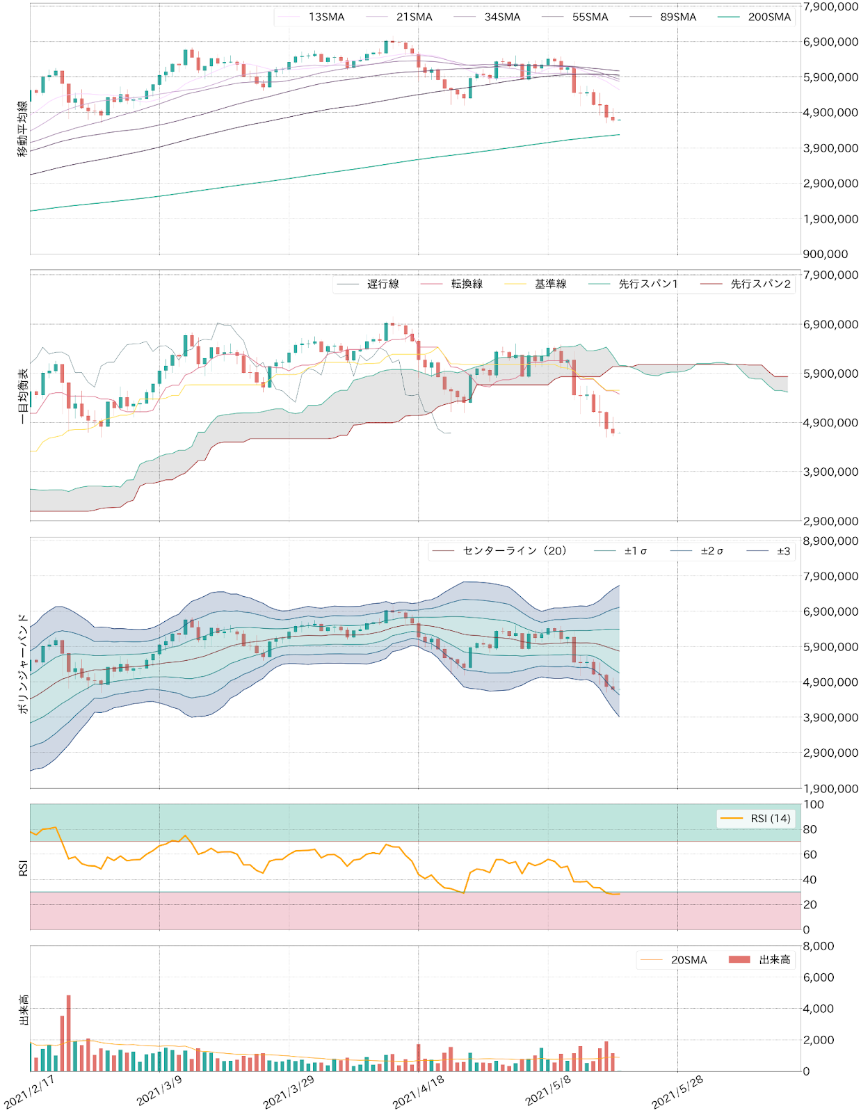 こうした中で本日は米連邦公開市場委員会(FOMC)議事要旨(4月27日〜28日会合分)に注目が集まる。先週は、予想以上の米消費者物価指数(CPI)によるサプライズで金融政策正常化が前倒しされる懸念がリスクオフを生み出したが、今週は米長期金利が1.7%から、足元、1.64%付近まで押しており、こうした懸念が幾分和らいでいるように見える。今夜(20日午前3時)のFOMC議事要旨でハト派的な内容が再確認できれば、ビットコイン相場を下支えする材料となると指摘されるが、それまでに一段安となる公算も十分にあると見込んでいる。