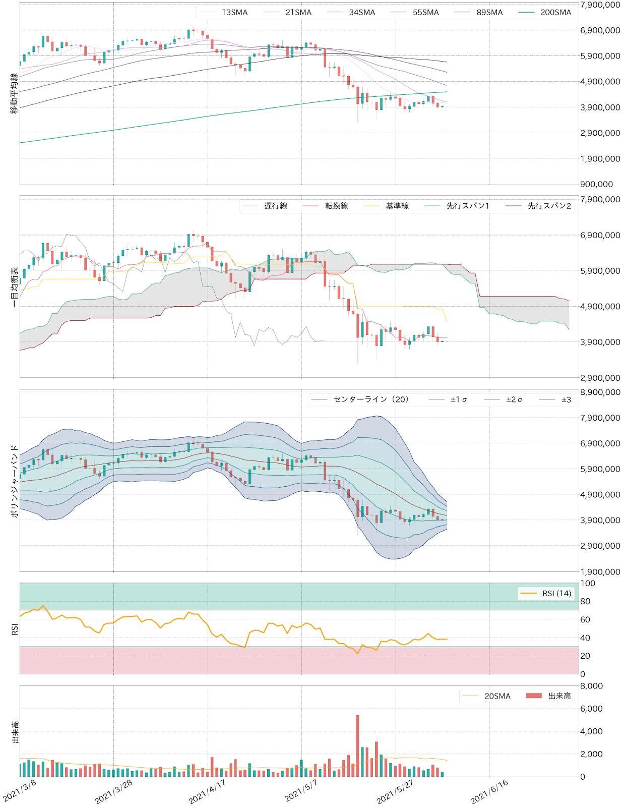bitbank Report 2021/06/07:上げ幅帳消しでBTCは横ばい CMEのBTC先物、OI下落止まらず