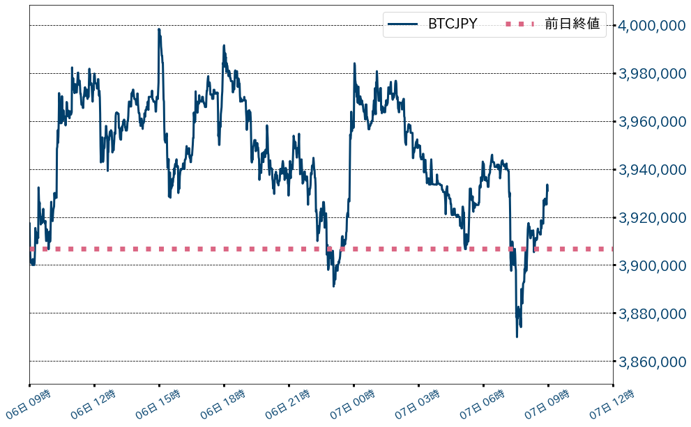先週(5月31日〜6月6日)のビットコイン(BTC)対円相場の週足終値は、前週比6,136円(0.16%)高の3,930,958円とほぼ変わらず。重要なイベントや指標が目白押しとなった週としては値動きは落ち着いていた。